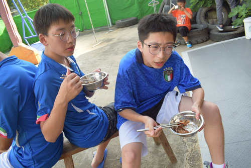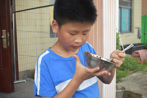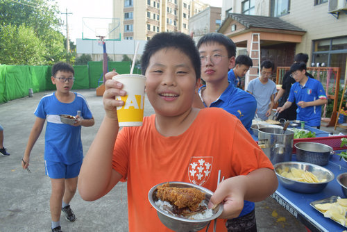 【暑期特辑:金钢碗,果汁满,鸡翅土豆油菜杆。白米饭,也不断,煎个葱饼配鸡蛋。】