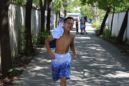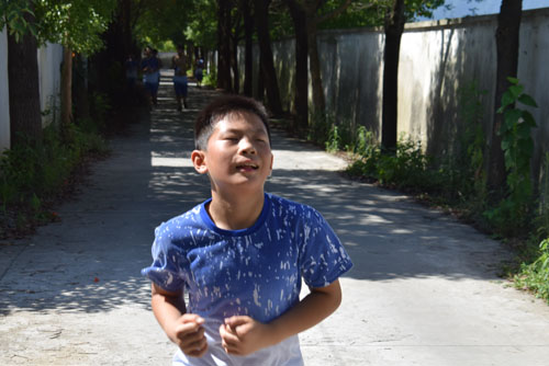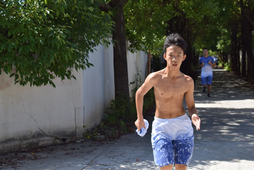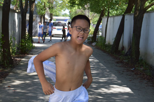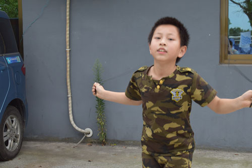 【照片:“男儿气概,尽在站立奔行。岂是怀中稚子可比?”】